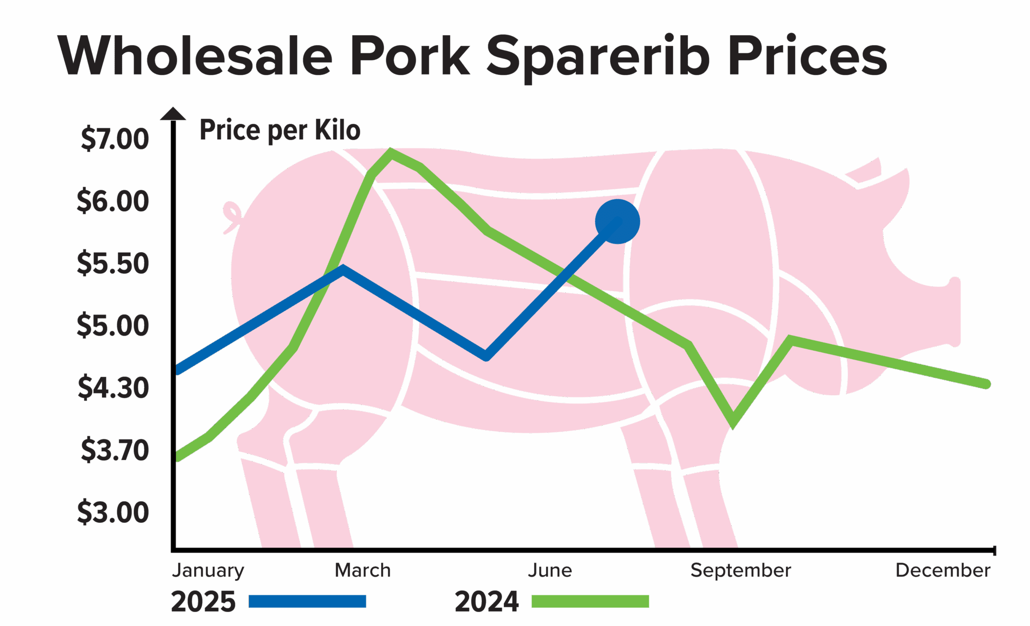 Les marchés du porc ont poursuivi leur détente en novembre après une période de prix inhabituellement élevés durant le troisième trimestre et le début du quatrième. Les rapports de marché de novembre indiquent une augmentation des abattages ainsi qu’une amélioration du poids des carcasses, ce qui exerce une légère pression à la baisse sur les prix des longes, des épaules (butts) et des jambons. Les ventrèches demeurent volatiles — la forte demande au détail pour le bacon empêche les prix de reculer aussi rapidement que prévu. Les côtes restent stables et relativement abordables, surtout en comparaison avec le bœuf.