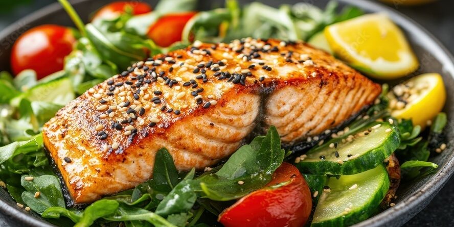 - Galettes de saumon croustillantes au panko avec yogourt à l’aneth